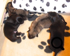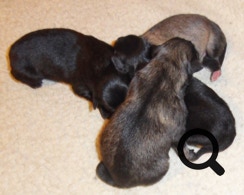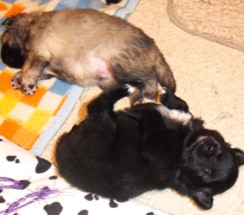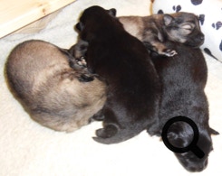 Alle Welpen sinf genetisch frei von PRA, Dilute Faktor und OCA2.