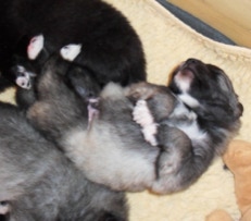 Alle Welpen sind genetisch frei von PRA, Dilute Faktor und in OCA2 genetisch frei oder Träger.