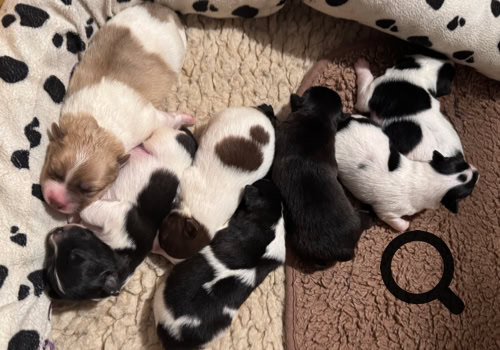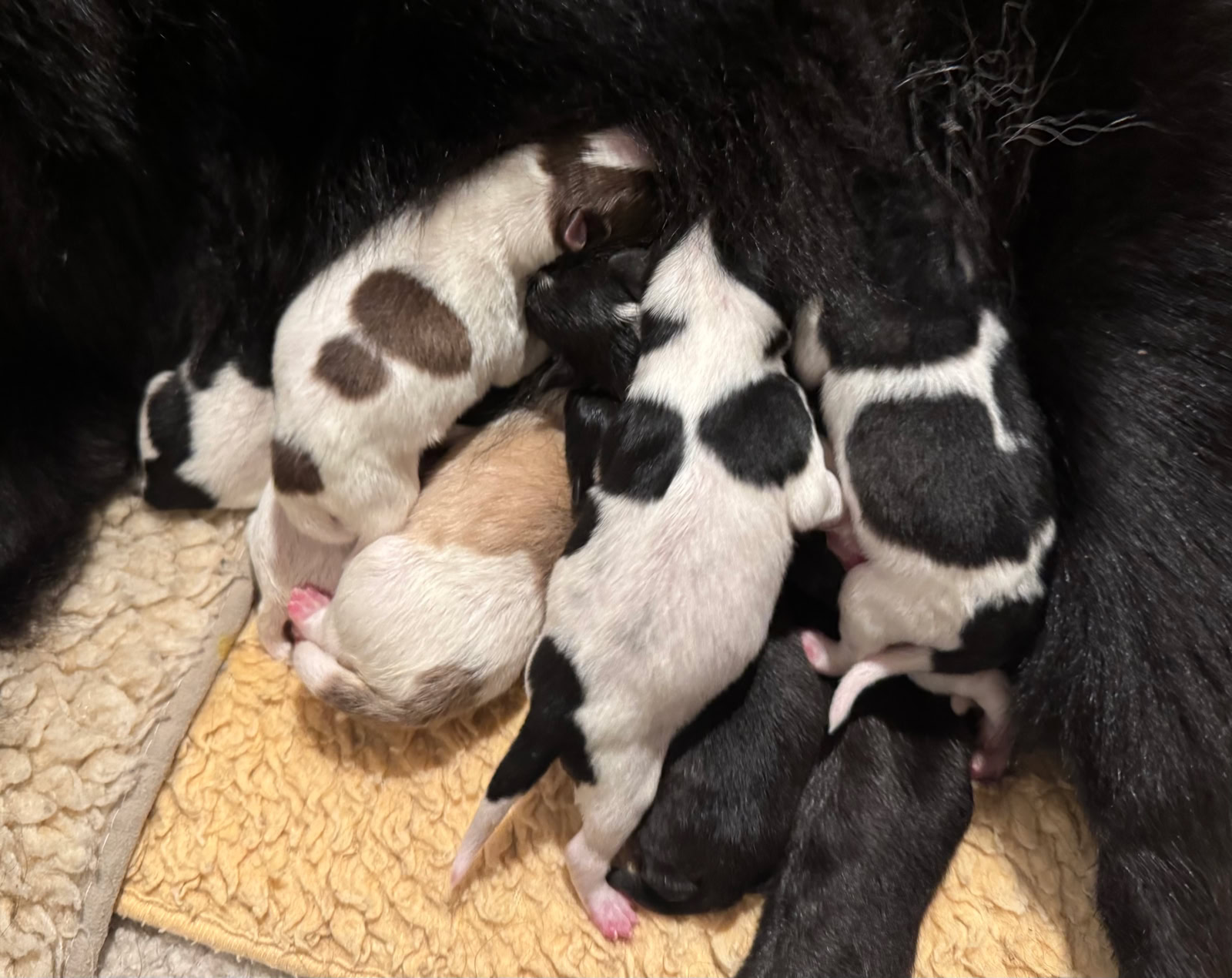 Am 27.11.2025 kam unser N-Wurf zur Welt, leider war es keine unkomplizierte Geburt, von 10 Welpen haben es 3 nicht überlebt (einer kam tot zur Welt und 2 weitere starben, als extreme Frühchen waren ihre Aussichten von Anfang ungewiß). Für Mama Jadea, zum ersten Mal Mama, war es belastend zu sehen, wie trotz ihrer und unserer intensiven Bemühungen, die beiden Lütten eingeschlafen sind. Sie haben gekämpft und auch zugenommen, aber es sollte einfach nicht sein :-(.