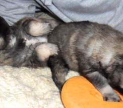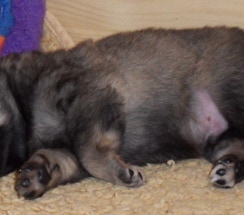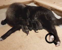 Alle Welpen sinf genetisch frei von PRA, Dilute Faktor und OCA2.