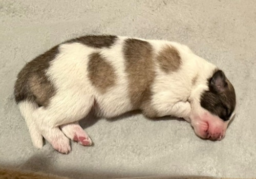 In diesem Wurf haben wir 3 Rüden: 1 x schwarz mit weißen Abzeichen (Milan), 1 x Schecke in braun (Marvin) und 1 x Schecke in wolfssable (Merlin);