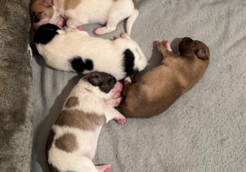 Rein von der Genetik hatten wir ja einen bunten Wurf erwartet, das aber fast alle eine andere Farben haben werden, war dann doch eine große Überraschung. Nun müssen die Kleinen erst einmal weiter gut wachsen und Mama gesund dabei bleiben.