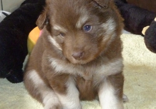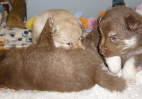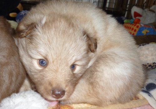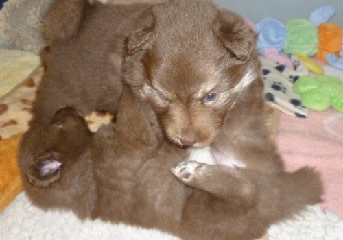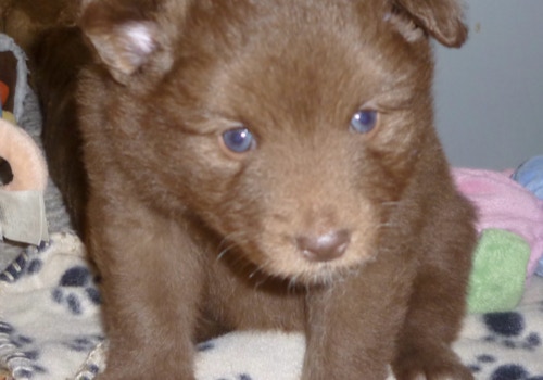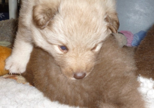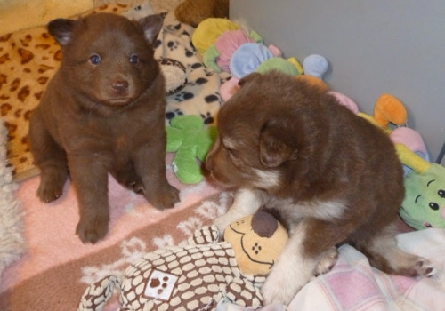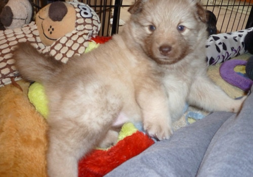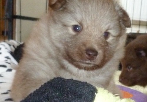 Kayli ( 1798 g ) ist der Wirbelwind der Vier, reagiert immer sofort, wenn sie uns hört, kommt aber nun auch genau so schnell wieder zu Ruhe, wenn nichts von Interesse passiert. Beim Spielen schon mal wilder, aber auch sie interagiert fair, wenn das Gegenüber nicht will, reagiert sie mit Rückzug oder spielt sofort sanfter. Ihre Rute kreiselt einem Propeller gleich, wenn sie sich beim Kraulen oder Ansprache freut. Sie sucht nun schon gezielt den Kontakt zum Rudel und besonders Oma Greycy hat es ihr angetan (was sogar auf Gegenseitigkeit beruht), sie bewegt sich frech und neugierig zwischen den Großen und fordert alle zum Spielen auf, ein so süßes Bild bei dem Größenunterschied, der noch herrscht. Angst hat sie dabei keine und Henny lässt sie gewähren, sie beobachtet die Lütte und Oma Greycy hält sich tatsächlich immer in ihrer Nähe und wacht über sie.