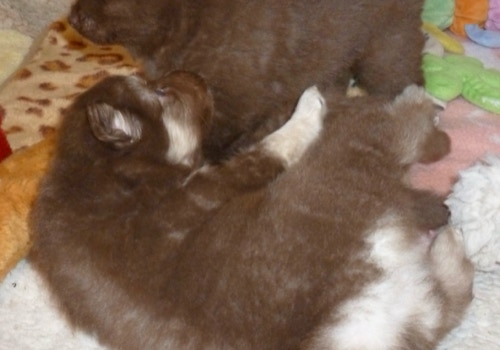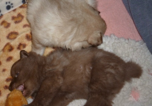 Kundri (1236 g) unser Püppchen, mal frech, aber nicht forsch, dann wieder sanft und abwartend, weiß genau was sie will oder nicht, sie erkundet neugierig was sie interessiert und spielt auch mal selbstvergessen ohne ein Geschwister. Beim Interagieren kann sie sich durchsetzen, ist dabei aber nicht giftig, sagt aber deutlich wenn sie genug hat. Sie lässt sich zu Anfang gerne mal Zeit beim Kennenlernen, danach fordert sie auch ihre Krauler und Schmuser ein. Mit Keelin kuschelt sie noch viel beim Schlafen, sie braucht wohl einfach noch mehr körperliche Nähe.