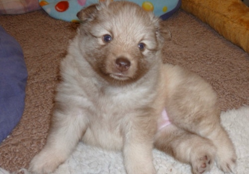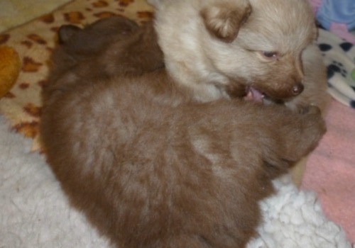 Kimay ist der Kräftigste der Vier ( 1848 g ), im Moment ein ruhiger Rüde, mit der, immer noch großen Vorliebe, zu Anfang zu knurren (bei uns hat er den Spitznamen Knurrhahn), ansonsten ein manchmal ruppiger Spielpartner, der aber nicht brachial wird, sondern beim Interagieren fair bleibt. Beim Schmusen schaut er erst genau, wer ihn krault, wenn es ihm genehm ist, krabbelt er recht schnell auf den Schoß und fordert dann seine Streicheleinheiten.